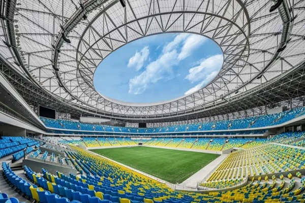 它由「一场两馆」组成,「一馆」指的是共1.8万座的综合体育馆;「一场」指的是按照FIFA标准建设的专业足球场,配备锚固系统,能同时容纳6万名观众。